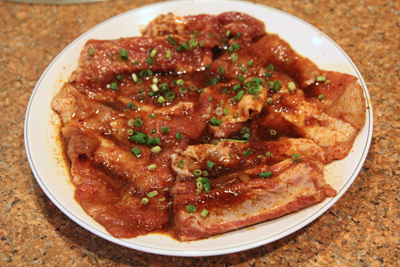 まずは、テジカルビ(豚カルビ、돼지갈비)をつつきながら……。