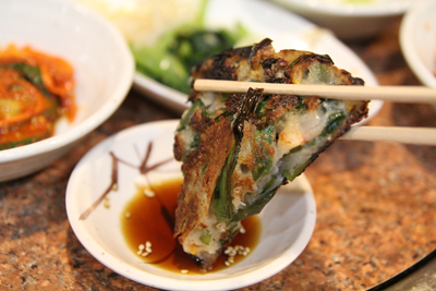 定番のヘムルパジョン(海鮮チヂミ、해물파전)など。