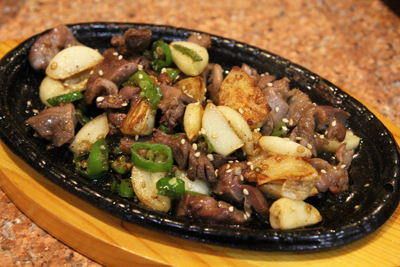 大人は昼からビールを飲みつつ、タットンチプ(砂肝炒め、닭똥집)を肴に。コリコリとした砂肝の食感と、ホクホクとしたニンニクの対比、そしてビリッと刺激を効かせる青唐辛子の存在感がたまりません。
