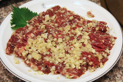 実は今回初めての試みとして、「メなし会」ながら「メニューにある韓国料理」も取り入れてみました。ガーリックハラミは1人前1400円(写真は2人前相当)で、しっかりメニューに載っています。