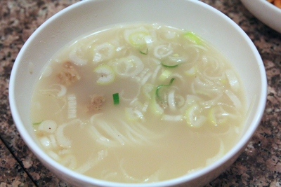 チュンムキムパプにはソルロンタン(牛スープ、설렁탕)も添えて。
