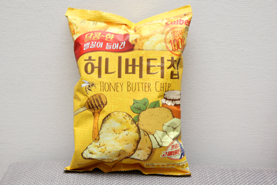 今年8月にヘテ・カルビーから発売された「ハニーバターチップ」というスナック菓子ですが、先月あたりから社会現象になるほど流行しています。