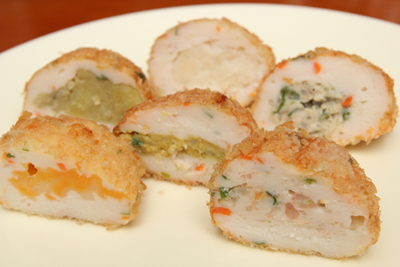 オムク(オデンの練り物、어묵)の中にジャガイモやエビ、カレーといった具を入れ、パン粉をつけて揚げたものなのですが、それ以前に韓国におけるコロッケとは何か、という説明が常に必要となる料理です。