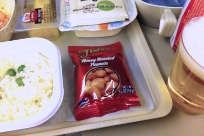 ピーナッツで帰国報告(ナッツリターン)というのは時事ネタ的にしばらく使えるのかもしれません。ちなみにみなご存じかとは思いますが、このピーナッツは機内食でビールを頼むと自動的についてきます。