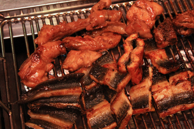 温泉地である牙山には日本統治時代から日本人が旅行に来ており、そういった人たちに提供していた高級料理がチャンオグイ(ウナギ焼き、장어구이)でした。80年前の日本人が愛したウナギを同じように楽しもうじゃないかというのが今回の趣向。店内に残る貴重な日本家屋も眺めつつ、またウナギとともに、同じタレで焼いた鶏肉なども味わいました。