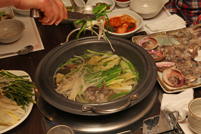下見まで行ったにもかかわらずいったんはボツになり、それでも諦めきれずにあちこち探し、ようやく見つけたのが仁川(インチョン)にある海鮮しゃぶしゃぶ専門店。冬の時期はトリガイをしゃぶしゃぶで提供し、夏は夏でハモのしゃぶしゃぶを提供するという店でした。