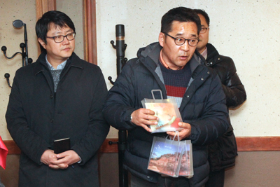 僕のアニキ分で仁川在住。某老舗アンコウ店(ぶっちぎり108料理P37参照)の2代目として全国の美食に精通している心強い方です。一方で地元仁川市の観光にも力を注いでおり、この日は僕らが来たということで仁川市役所の方とサプライズのプレゼントを届けてくださいました。