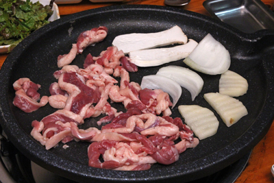 ともあれ、地元の方に教えていただいた専門店に行き、オリグイ(アヒル肉の焼肉)と……。