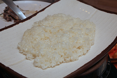 いちばん好評だったのは利川産のもち米でしょうか。ほかにアワビ入りの栄養粥も出ましたが、この蒸したてのもち米を水炊きの韓方スープに浸して食べる、というのが抜群にうまかったです。中にはお店の人に頼んでもち米を購入した方もいらしたほど。
