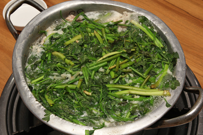 見ての通り、セリもどっさりですし、さらにはニンニクもどっさり。舌にガツンとくるインパクトこそが韓国フグの魅力です。