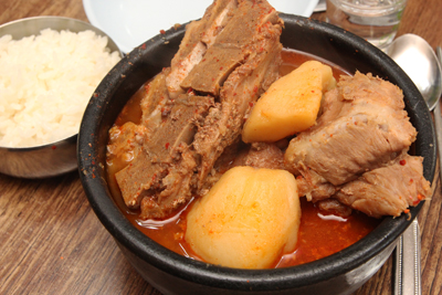 翌日はカムジャタン(豚の背骨とジャガイモの鍋、감자탕)の朝食から。