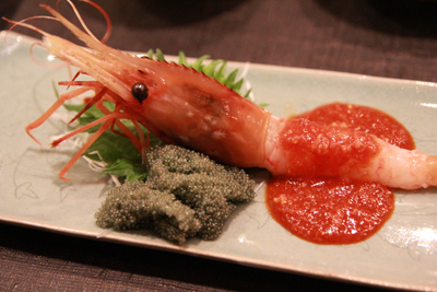 ボタンエビをケジャン(カニの薬味ダレ漬け、게장)風に仕立てた料理ということですが、昨年に引き続いてこれが出てきたのは嬉しかったですねぇ。