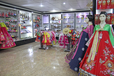 ハングルで「記念品商店(기념품 상점)」と書かれています。この商店という単語は頻繁に登場し、街中では……。