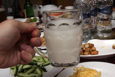 マッコリも同じようにジョッキで登場。旅行中、マッコリを飲んだのはこの1回だけですが、さらっとした飲み口で発泡感がなく、ほんのり発酵が進んで酸味を感じました。また機会があれば、いろいろ飲み比べてみたいところです。
