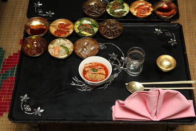 ちなみに宮中では十二楪飯床、両班の家では九楪飯床、庶民の家では三楪飯床を基本に、余裕のある家では五楪飯床、七楪飯床の形式を取りました。