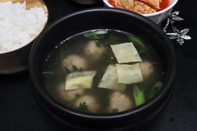 ・タッコギスッタン(鶏団子とヨモギのスープ、닭고기쑥탕)