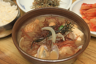 莞島に戻って、ヘチョテンジャンクッ(海藻入りの味噌汁)。