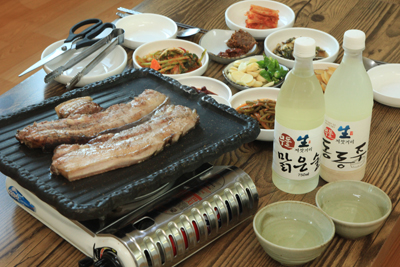 マッコリ醸造場を兼ねる藁焼きサムギョプサル店。