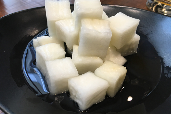 というアナウンスがありましたので、すぐ出るつまみを用意しておきます。韓国ではチキンとなると必ず一緒に出てくる名脇役。この大根の酢漬けがあればまずは大満足ですが、欲を言えばオーロラソースをかけたキャベツの千切りサラダとか、マカロニと呼ばれる筒状のスナック菓子なんかがあるとさらにツボですね。