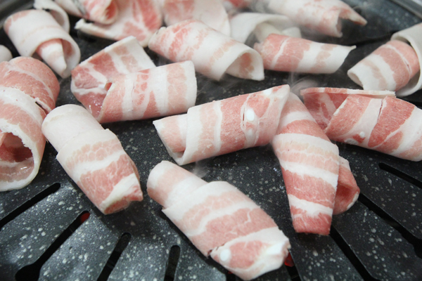 ひと昔前のサムギョプサルってみんなこんな感じでしたよね。まだテペサムギョプサルという言葉もなく、当たり前のように冷凍肉でくるんとカールしていて。