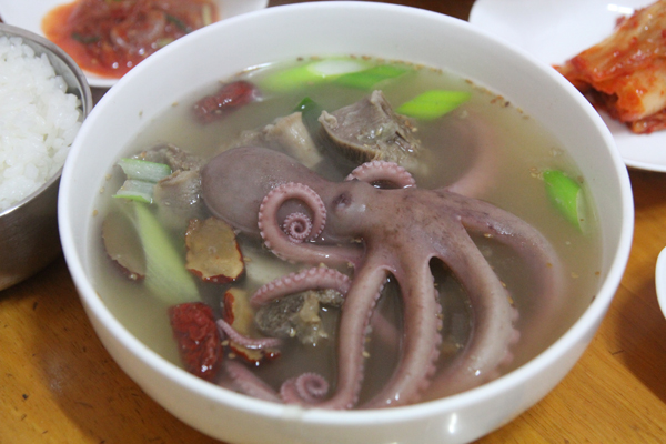 牛を売ると書いて「犢」という字が示す通り、この地域には全羅南道でも有数の牛市場があり、また近隣の霊岩湾では良質のテナガダコがとれました。地元名物を掛け合わせただけではありますが、味わいの相乗効果から考えると、見事な発想だったと賞賛すべきでしょう。