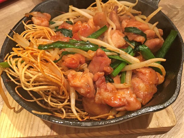 タッカルビ(鶏肉と野菜の炒め物、닭갈비)がパリパリの麺と出てきたかと思えば……。