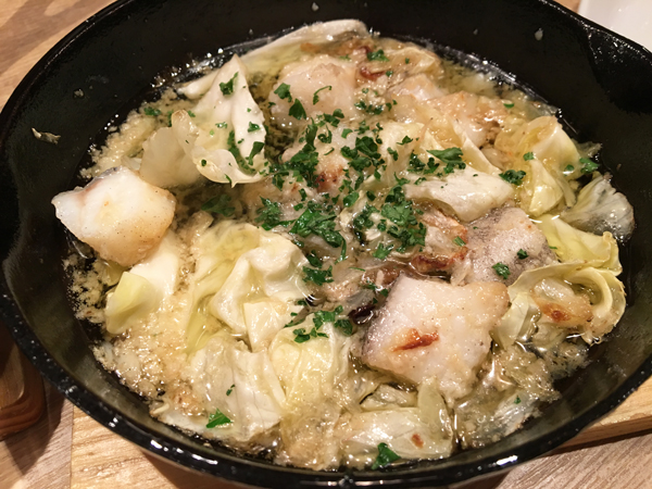 鱈の入ったアヒージョにはアミの塩辛で味をつけていました。