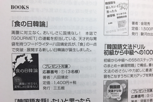 最後の「Present & Information」のコーナーでは新刊『食の日韓論 ボクらは同じものを食べている』の紹介もしていただきました。読者の方3名様へのプレゼントもついています。