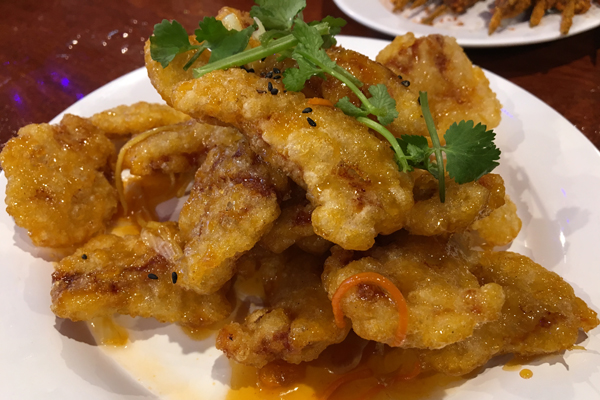 羊の串焼きをつつきながらビール、焼酎をぐいぐいと飲み、サイドメニューにはもち粉を絡めた食感のよい酢豚や……。