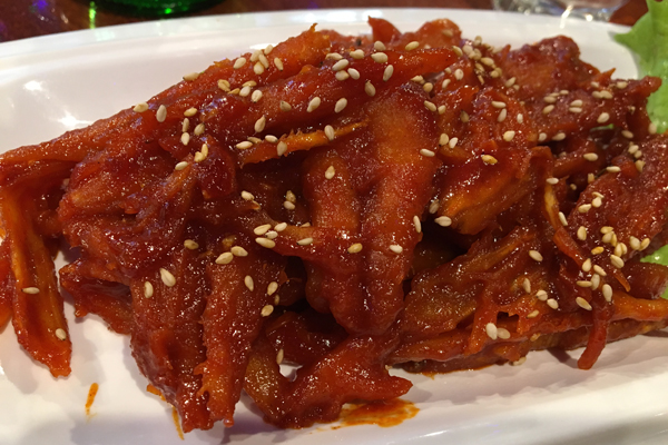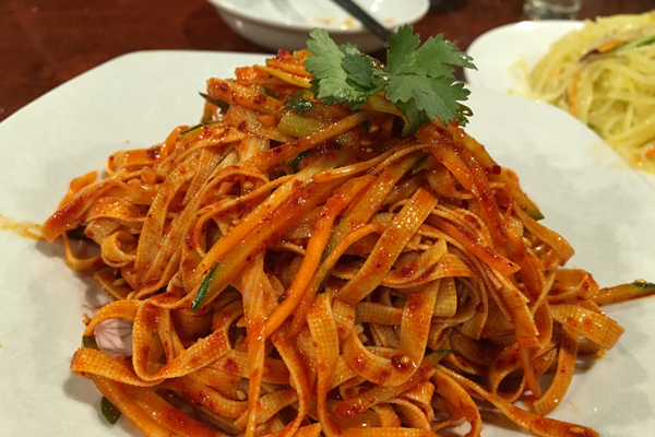 延辺料理店に行くとは必ず頼む、干し豆腐の和え物。