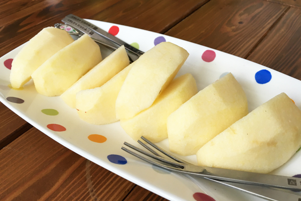 奥様がむいてくれた「我が家のリンゴ」をさっそくいただいてみたり。