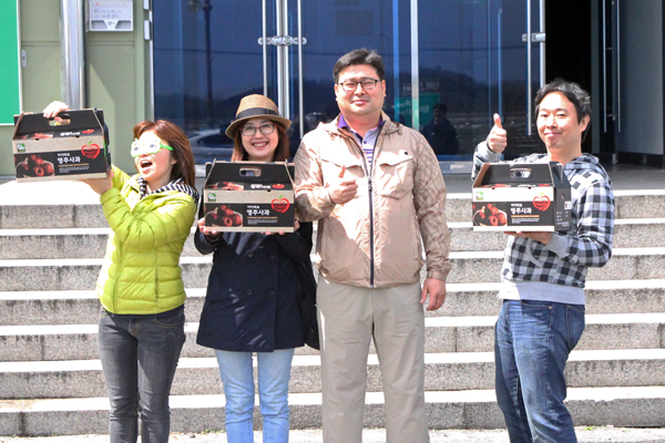 検疫の関係で日本に韓国産リンゴを持ち帰れないため、かわりに食べてもらおうと、ソウル在住の友人たちに栄州(ヨンジュ)名産のリンゴを送付。栄州リンゴは地域を代表する特産品で、2015年度のデータを見ると、栽培面積、生産量ともに韓国一です。