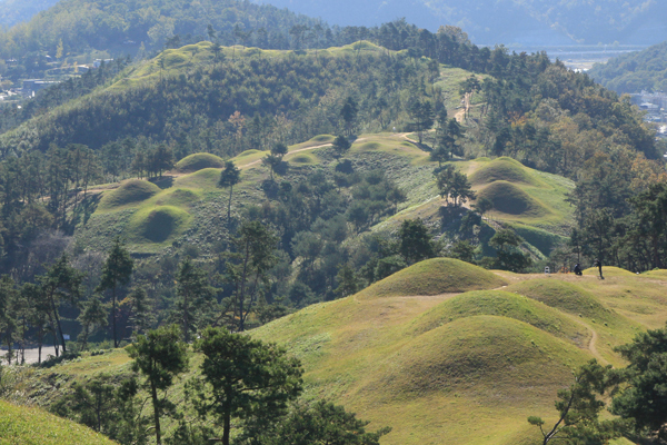 ただ、そんな地方都市にもろもろあって3泊してみると、確かに地味は地味ながら、素晴らしい魅力を持った地域であることがわかりました。それが冒頭の写真。先ほども書いた大伽耶時代のものとされる古墳群ですが、このモコモコ具合に一目惚れです。