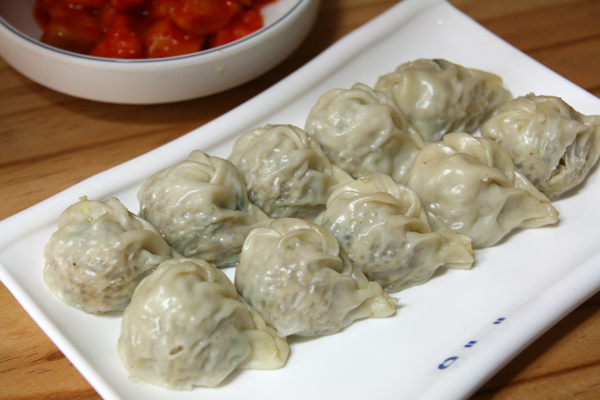 ひと口サイズのマンドゥ(餃子、만두)をセットにできるのもいいですね。