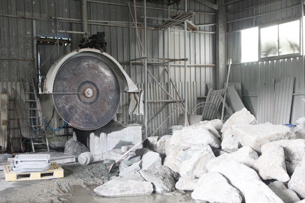 巨大な岩石をスライスするダイヤモンドカッターや……。