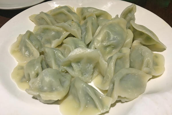 ニラがたっぷり入ったムルマンドゥ(水餃子、물만두)。