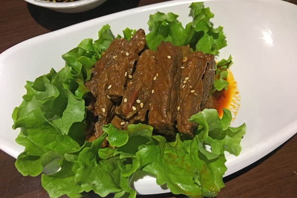 チャンジョリム(牛肉の醤油煮、장조림)かと思いきや、マーラーソゴギ(麻辣牛肉、마라소고기)という中国語と朝鮮語がチャンポンになった名前の料理。平壌でも、開城でも中国風にアレンジされた朝鮮料理を食べて驚きましたが、その出どころは意外とこういうところからなのかもしれません。