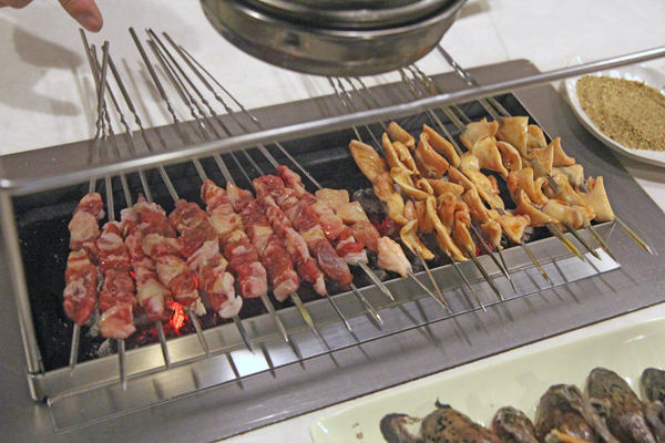 会話として日中韓のSNS事情がやり取りされていますが、あまり気にしないでください。見るべきは串を扱う慣れた手さばき。僕も新大久保あたりで食べるときは率先して焼き奉行を担当するほうですが、やはり本場の技術は参考になります。