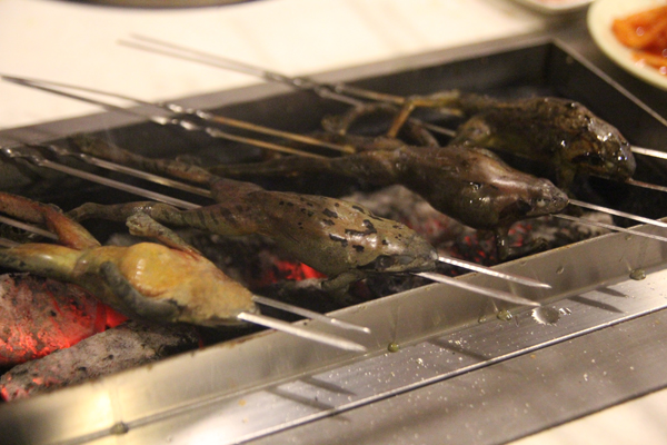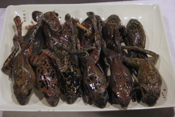市場で買ったものを店に持ち込んだのですが、こうした姿焼きも定番の食べ方だそうです。なんだかんだ延辺にいる間で8匹ぐらいのカエルを食べました。