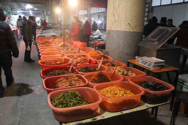 朝鮮と中国の食文化が見事に混在しているのですが、特にエリアで分かれていたりするのでなく、どちらと区別することなく並んでいます。飲食店ではどちらかに分割されやすい延辺の食文化が、ここでは見渡す限り混在しているのに興奮しました。