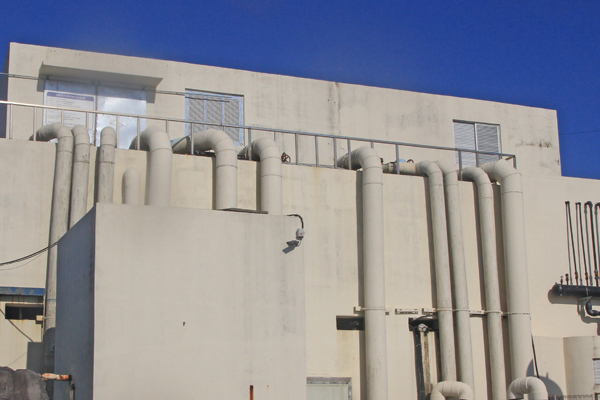 済州島の代表的な観光地である城邑民俗村や、済州民俗村からもほど近い場所に、写真のような建物があります。たくさんのパイプは先ほどの海から海水を汲み上げるためのもの。