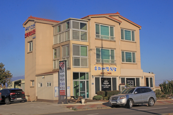 新大久保で「韓流」、「黒豚」というお店をやっていらしたご夫婦ですが、いまは奥様のご実家がある済州島の摹瑟浦に帰られています。もともとお母様がなさっていた店を引き継いだそうですが、そんな経緯もあって店名は「ウリオモン食堂(우리어멍식당)」。オモンというのが済州島の方言でオモニ(お母さん)を意味します。