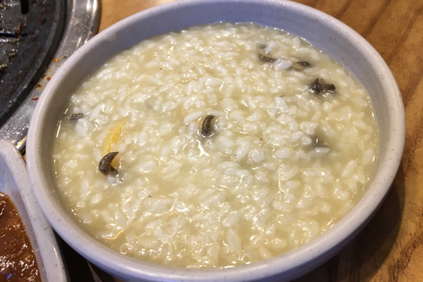 黒豚とともに、チョンボッチュク(アワビ粥/전복죽)が美味しいというのも大きなポイントだそうです。僕が店にいたのはわずかな時間でしたが、それでもこのチョンボッチュクをわざわざテイクアウトしにくる地元の方がいらっしゃいました。