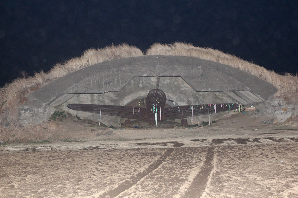 食事中に「ウリオモン食堂」からもそう遠くないと聞き、お願いして連れて行っていただきました。これは日本統治時代に作られた掩体壕(えんたいごう、飛行機の格納庫)の跡。かつてこの地域には日本軍の作ったアルトゥル飛行場があり、戦争の拡大とともにさまざまな軍事施設が設けられました。