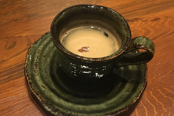 この日はサンファチャ(双和茶/쌍화차)でしたが、ただのサンファチャではなくたいへんな濃厚仕立て、かつショウガがガツンと効いたものでした。ショウガが主役と思いきや、それがまた韓方のフレーバーとよく合っている。贅沢なコースを締めくくるにふさわしい見事な1杯でした。