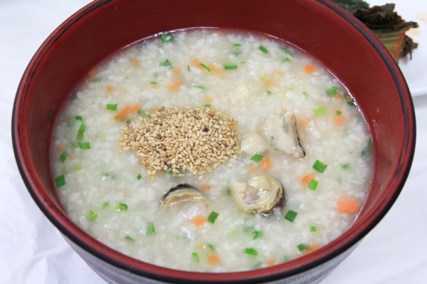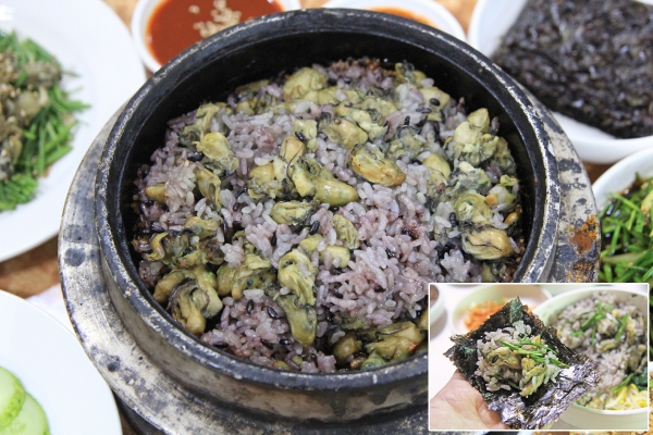 【韓国の旬メシ054】韓国における牡蠣の最盛期は11~2月。忠清南道の西海岸沿いでは小ぶりながらも天然の牡蠣がとれます。写真は保寧名物のクルバプ(牡蠣ごはん、굴밥)。ノビルの和え物と一緒に海苔で包んでも美味です。