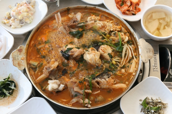 【韓国の旬メシ060】真冬が旬のアンコウ鍋、アグタン(아구탕)。仁川ではムルトンボンイタン(물텀벙이탕)とも呼ばれます。直訳で「水にドボンする魚の鍋」。かつては捨てられていましたが、いまはすっかり高級魚です。