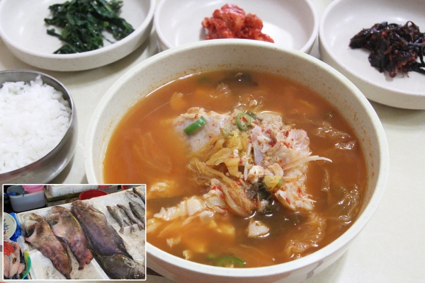 【韓国の旬メシ066】ぶつ切りにしたクサウオをキムチと一緒に煮込んだ、コムチクッ(곰치국)。江原道の海沿い地域で食べられる郷土料理です。アンコウのようなゼラチン質のぷるぷるとした身の食感が持ち味。真冬の味覚です。
