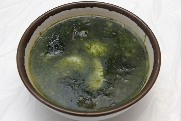 【韓国の旬メシ070】韓国語でメセンイ、日本語でカプサアオノリと呼ばれる海藻をスープにした、メセンイクッ(매생이국)。全羅南道を本場とする真冬の味覚です。同じく冬の素材である牡蠣や、韓国餅を入れて味わいます。