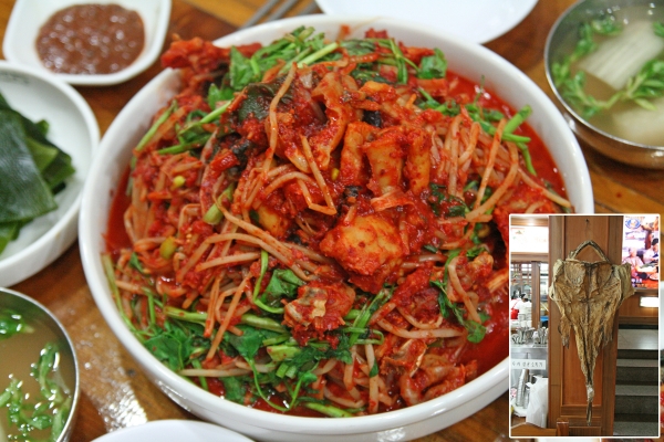 【韓国の旬メシ071】アンコウをセリや大豆モヤシと蒸し煮にした、アグチム(아구찜)。慶尚南道の馬山が発祥の料理で、干したアンコウを使うのが現地式です……が最近は現地でも生アンコウが人気とか。味は干しダラ風です。